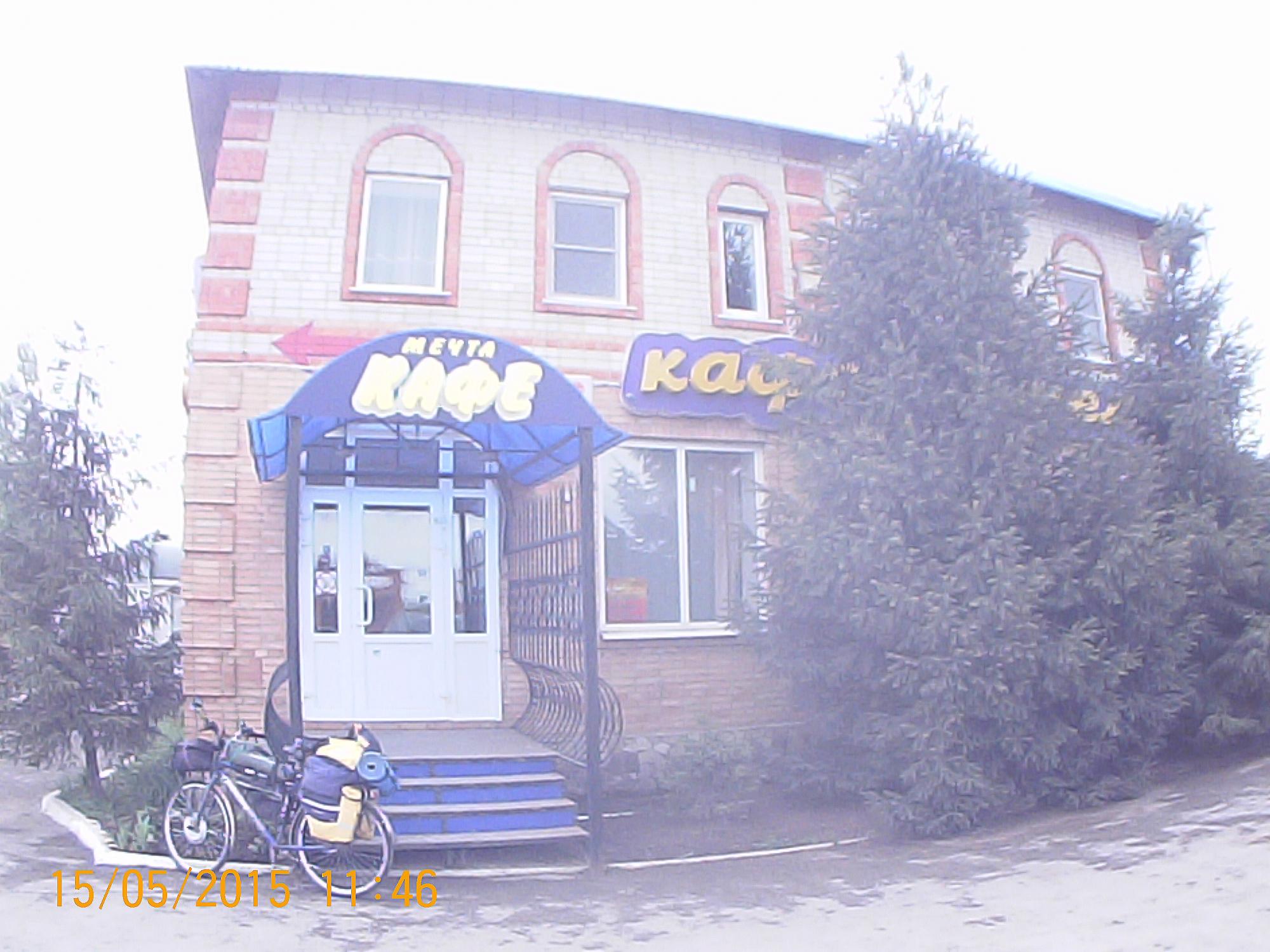 Подзарядка в обед. Единственное кафе где я не кушал. И такая жара...