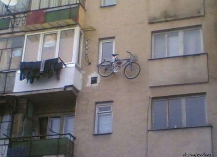 Вот люди на веревке из окна на любой этаж поднимают и на стену подвешивают.... Не украдут, под ногами не валяется и супруга не ругаеЦЦа :-D  :dance: