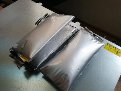 Очень много пакетов раздуто, разобрал первую секцию, из них, те что в нормальном внешнем состоянии, имели напряжение 3.3В. остальные по нулям. У меня сразу возникло много вопросов к продавцу, я не находил информацию,что lifepo4 может так раздуваться и сразу подумал,что это Lipo, потому что они боятся разряда, тем более на ячейках вообще нет никаких маркировок. Так же смущает,что используется 11 ячеек,вместо 12, а зарядное имеет характеристики 48В 5А, и это для пакета на 36В. Я читал,что lifepo4 не боятся сильного разряда и их можно восстановить, но сколько не стоят отдельно ячейки на зарядке,напряжение выше 0.20В на них не поднимается. Завтра разберу второй пакет и посмотрю,что за BMS