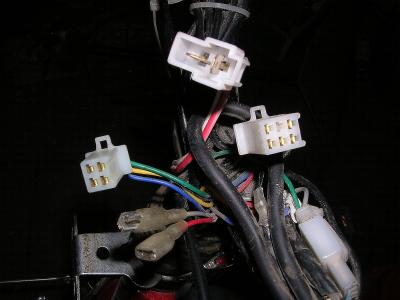 По разьёмам я так понимаю: одна пара проводов включение общего питания, т.к на фотах собранного велика есть подобие замка зажигания., ешшо пара на фару., четырёхконтактный разьём, думаю поворотники, и остается только шестиконтактный разьём и оборванный белый проводок.