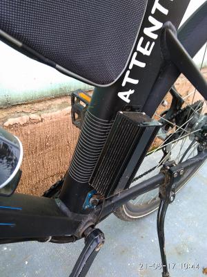 Я это сделал!и аккумулятор и контроллер запихнул в раму.плату контроллера пришлось вынуть из корпуса,обмотать изолентой(кроме радиатора)и запихнуть в эту стойку.снизу через дырку где была зарядка вывел провода,спаял и засунул обратно.теперь выглядит идеально.осталось дождаться когда заспицуют 28 обод с мотором.