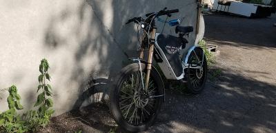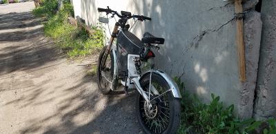 Продам электровелосипед на базе рамы "терминатор", начало сборки 2016г., эксплуатации 2017г.  Батарею собирали всем известные тут партнеры  LI-FORCE, 80В  37АЧ  БМС 150а. Батарея состоит из трёх частей, для удобства установки в раму.  Контроллер Mark II, мотор колесо Миникроха 3000Вт. Тормоза 205мм перед гидравлика, зад механика, на борту есть питание 12в, свет из мощной LEG фары, задний габарит совмещен с тормозом. Колеса Перед 26*3", зад 20*3". Мощные двойные алюминиевые обода.  Бортовой компьютер Cikl Analistic.  Возможность переключения передач при движении на педалях (5 скоростей).  Реальный пробег в городе с моим весом (120кг) 75-80км, максималка 75км/ч.  Быстрое зарядное устройство 10А, полная зарядка за 3,5 часов.