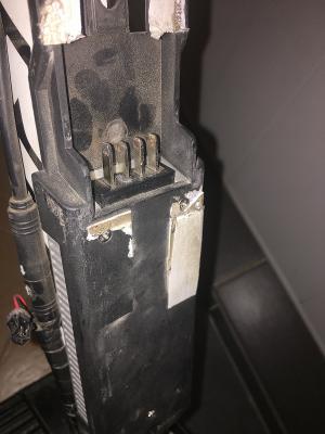 Разобрал крепеж батареи - на одном из контактов наплавленный пластик:
