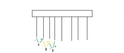 Да. Крайние - это силовые, - слева и + справа соответственно. Минус должен быть разорван платой БМС, если она есть.