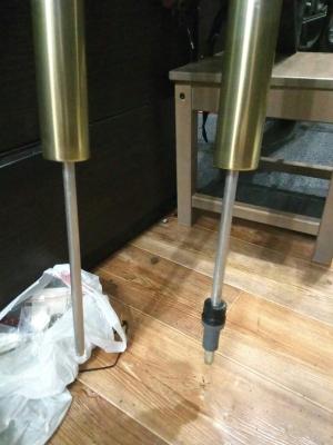 Ещё бы знать как положено :-( Сейчас будет куча чайниковых вопросов, в основном в картинках :-D так что отнеситесь с пониманием. Если бы все детальки были, то можно методом тыка что куда подходит, или при разборе посмотреть как было. Но не хватает на штоке (штанге) болта с большой плоской шляпкой, под ним пластиковая шайба и резиновый отбойник (демпфер) их тоже нет, всего этого узла, только торец с внутренней резьбой штанги. Не знаю куда эти отсутствующие детали должны упираться, в односторонний упор который надет на длинную пластиковую проставку? Из чего их сделать, широкую метал шайбу + винт с потай головкой чтоб с шайбой за подлицо а вместо демпфера кусок пробки или подходящую резину? И зачем там две резинки отбойника на штанге, может одна снаружи ставится между алюм заглушкой ноги и дном штанов, там не долетает нога до дна штанов?