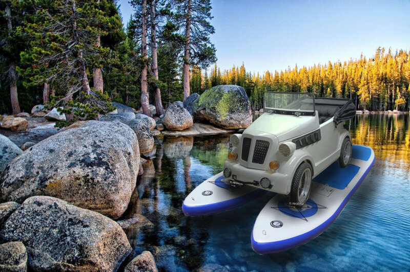 И вот кажется новая страсть без всякого научного обоснования и пользы в перспективе- ЭЛЕКТРОМОБИЛЬ АМФИБИЯ на БАЗЕ SUP-КАТАМАРАНА
