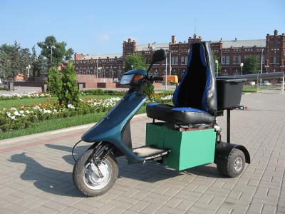 Что можно из него сделать и недорого? Есть также халявные гидридные аккум могу набрать батарею 48-60в около 30ач. Использовать какой то обычный бензиновый скутер взять только шасси с перед колесом?