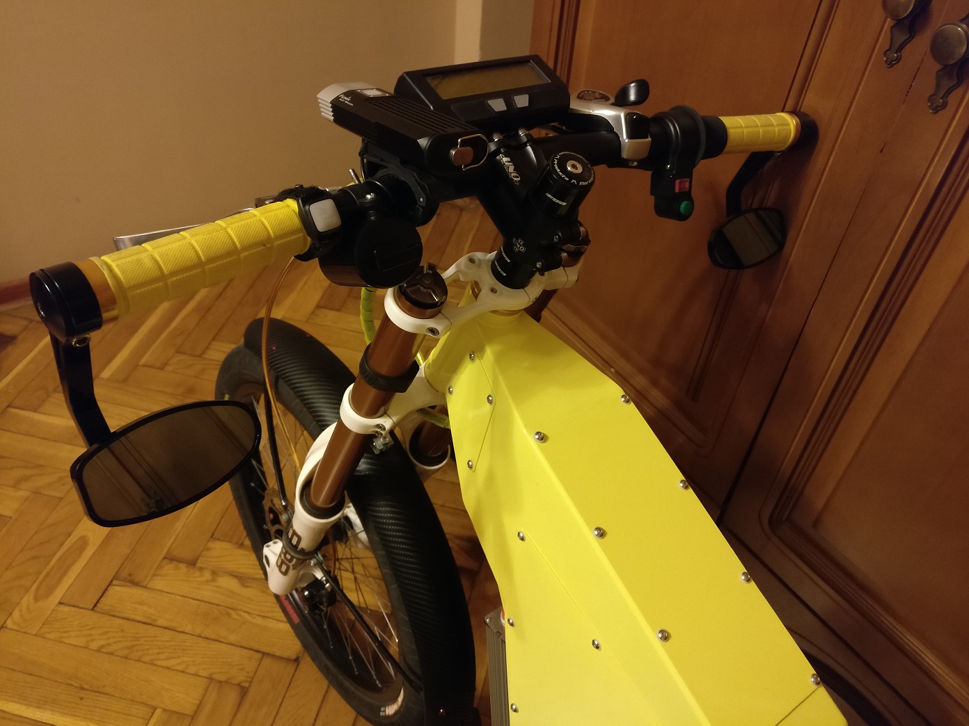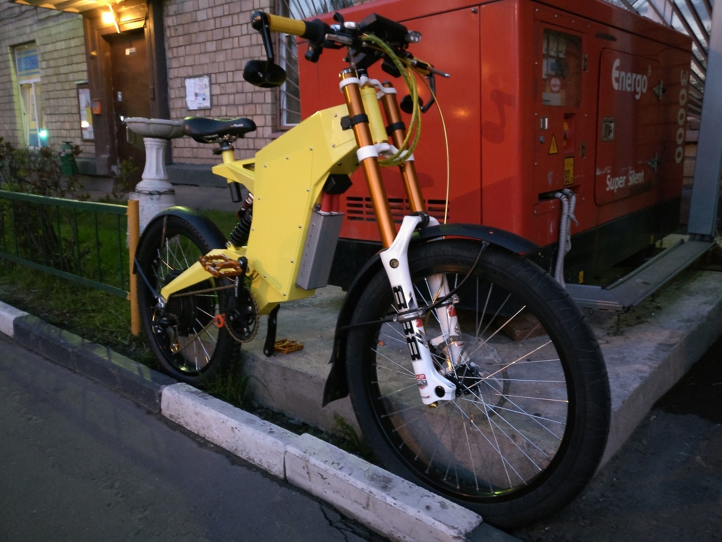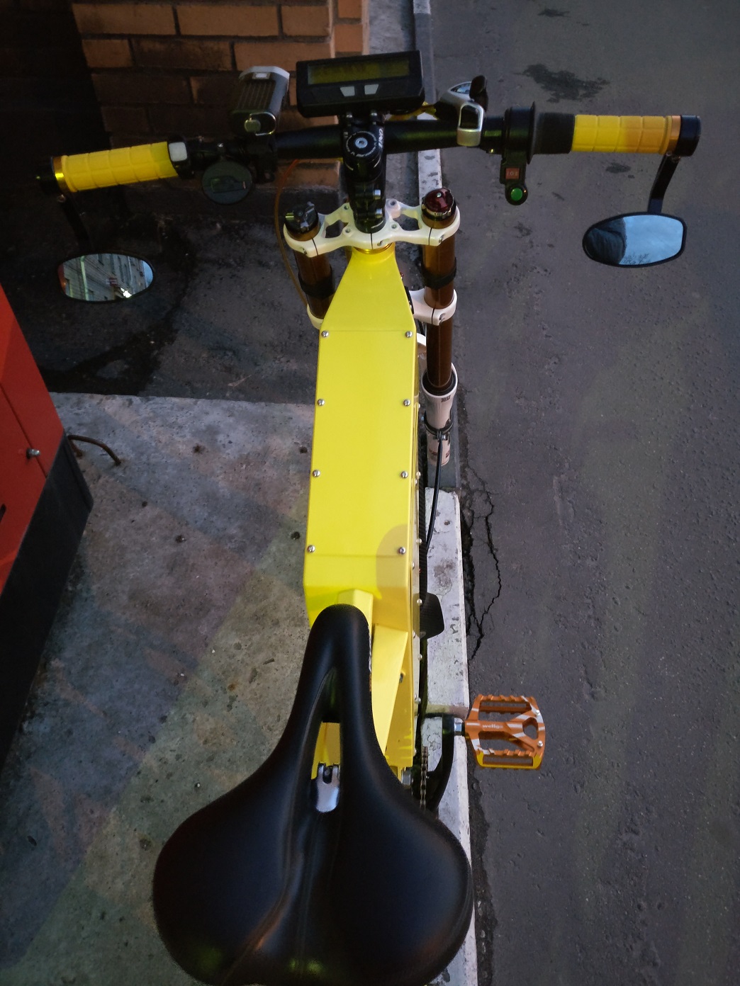 [user]Shnurok[/user], жёлтые жгуты с проводами и тросиками от руля в раму только перепроложите так, чтобы ими гориллу не сломать при максимальном ходе вилки.