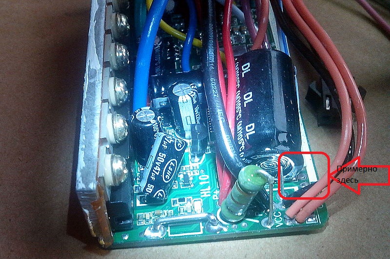 ... там будет ответвление на делитель входного напряжения, и 2 смд резистора запаяны параллельно.