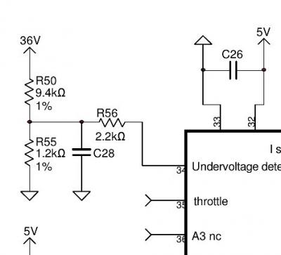 Всем привет! У меня такой-же контроллер, но другая проблема. Контроллер на 36 (отсечка 31), питаю, и довольно успешно, от 24х2=48в (2S1P). Очень беспокоит напряжение отсечки, так ка был случай - "проспал"...   Как поменять напряжение отсечки с 31 до 42 вольт?