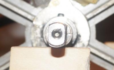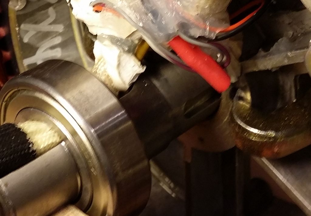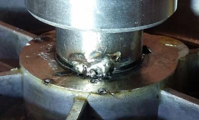 Была сделана попытка еще раз приварить ось к статору. Но увы, никакого стального кольца -вкладыша так и не удалось обнаружить, вероятно его и не было никогда в моем конкретно моторе. Более того, при внимательном обследовании выяснилось, что ось свернута.  Причем не разгонным, а тормозным моментом (статор пытался провернуться относительно оси по ходу движения).