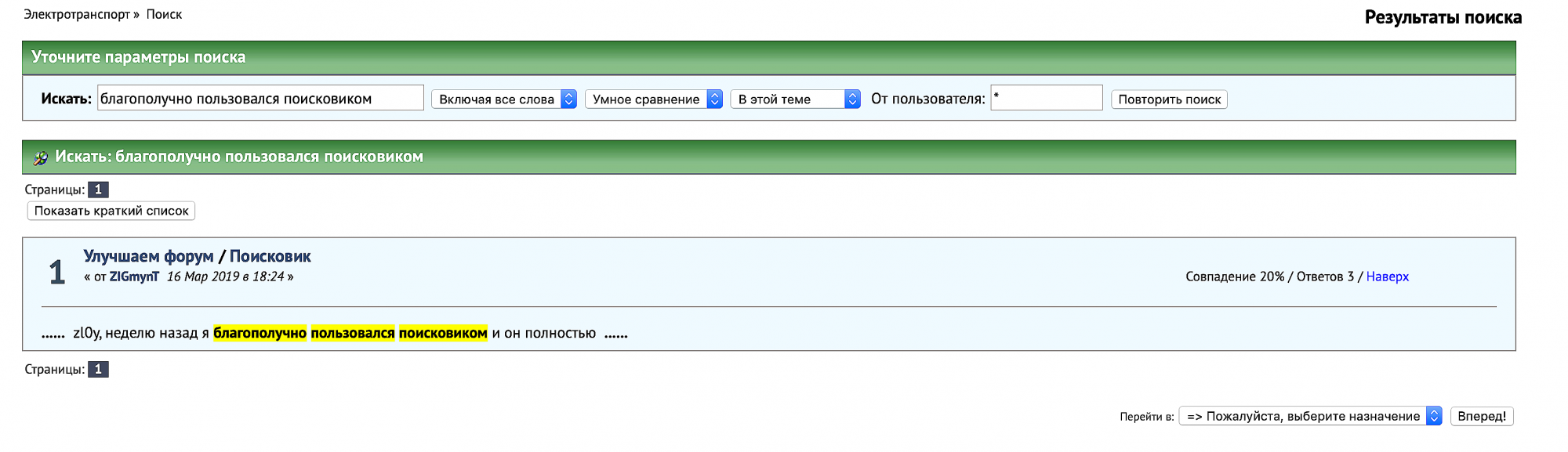 [user]ZIGmynT[/user], думаю, что с претензиями Вам нужно обратиться к разработчикам движка SMF, на котором работает данный форум. Я Вам пояснил, что тот поиск не работает как нужно и лучше воспользоваться штатным, который в меню. Собственно, на этом все, может это поправят когда-нибудь.  Форум с открытым исходным кодом, здесь он работает из коробки с небольшими модификациями с нашей стороны. На поиске это никак не отразилось.