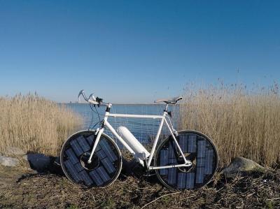 Солнечные батареи и эл-вел. - баян, до разумного веса и площади возимая солнечная панель, а это как примерно на фото ну чуть больше, то есть 1-2кв.м, даже в без облачный день будет давать совсем смешную мощность типа 50-100Вт. Хотя если поехать куда то, скажем на рыбалку где потом вел будет простой почти весь день и есть возможность постоянно крутить панель под идеальным углом к солнцу, то идея жизнеспособна, в остальных случаях см. на выходную мощность (и напомню в идеальный солнечный день).