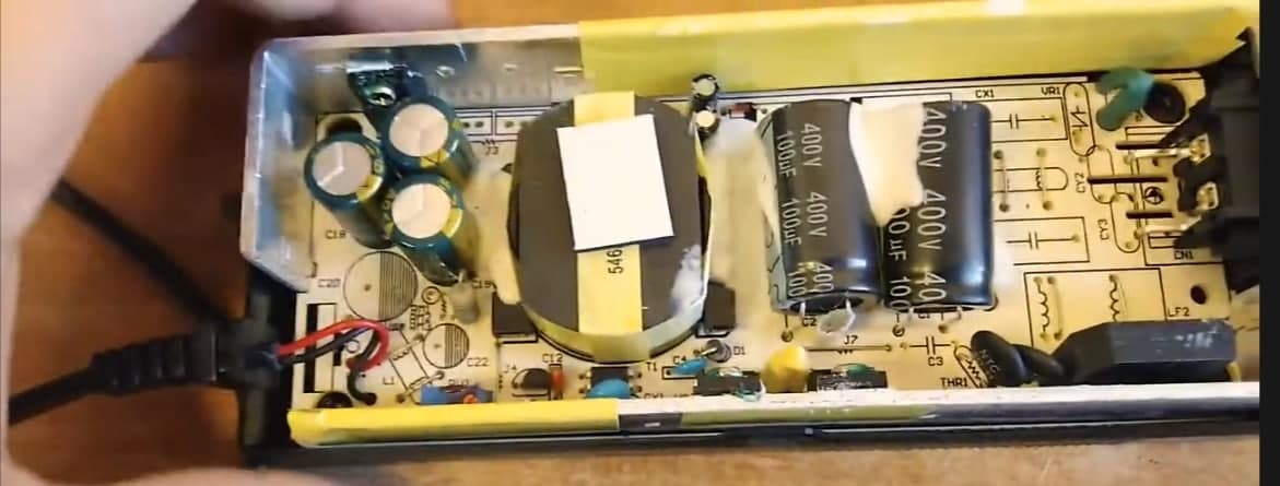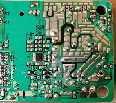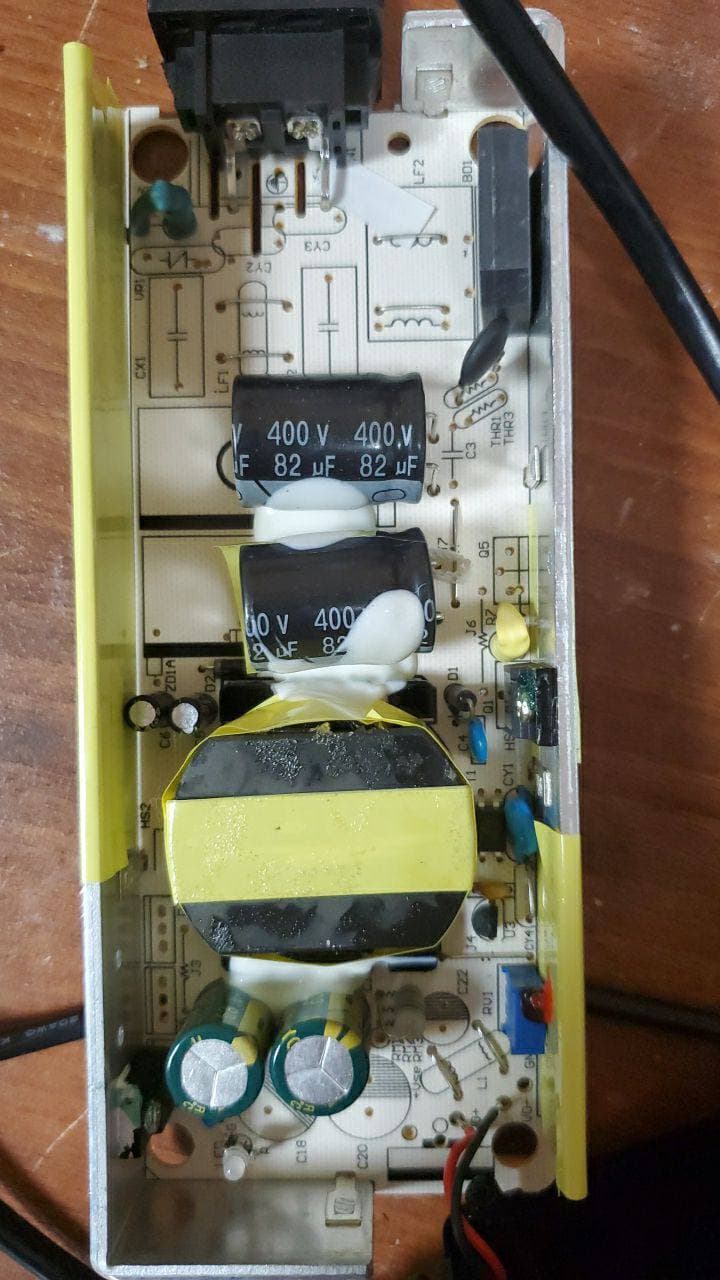 Была полностью исправная зарядка 54,6В от Куги М4-про. Решил я ее доработать вентилятором мелким, нашел на плате LM358 (регулятор выходного напряжения) и попытался повесить питание кулера на питание ЛМки. На 4й и 8й лапе ЛМ было напряжение 26,5В при нормальной работе без нагрузки. Подключил на эти ноги кулер 24В, предварительно проверив его ток на другом БП (60мА). Кулер сначала раскрутился до рабочих оборотов, напряжение на ЛМ358 просело с 26,5 до 24в, но через пару секунд зарядка ушла в защиту. После такого уже без кулера при подаче питания она не стартует, мигает импульсно светодиод красным слегка и щелкает вместе с этим в ней где-то еле слышно. Выходное напряжение при этом прыгает около 6-8В импульсно, напряжение питания на ЛМ358 также прыгает около 6В и пропадает. Никаких видимых повреждений на плате не замечено, запаха горелости не было, но проблема не уходит... Я так понял, происходит постоянный срыв генерации и он уходит в защиту, на этом зацикливается.