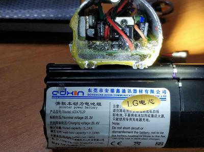 Вот и пришел конец моему самокату. Вроде зимой регулярно подзаряжал, но это не помогло. Меня (93кг) прокатил он метров 100 с полной зарядкой, легкого сына не осилил даже 2-х км. Долго пытался его оживить, раскачать, все безрезультатно. Вскрытие показало, что внутри 14 банок по 2600Ah, одна из который умерла полностью, даже тупая зарядка ее не увидела, а параллельная с ней банка на Lii500 показала только половину емкости. Эта пара была ближайшая к плюсу. Правда не все еще протестировал, жалко разрывать точечную сварку, может придется еще собирать все батарею обратно, так как попытки купить готовую большей емкости пока не увенчались успехом. Так же разборка показала, что силовой провод, идущий от аккумулятора был с поврежденной (перетертой) изоляцией и возможно из за этого был такой сильный саморазряд. Вот что было внутри.