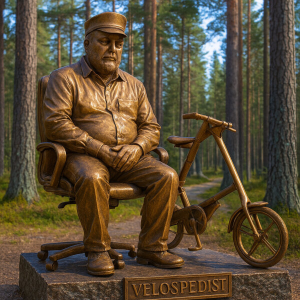 Всё на месте: подпись, пузо, кепка, офисное кресло и велосипед Стрида... B-)
