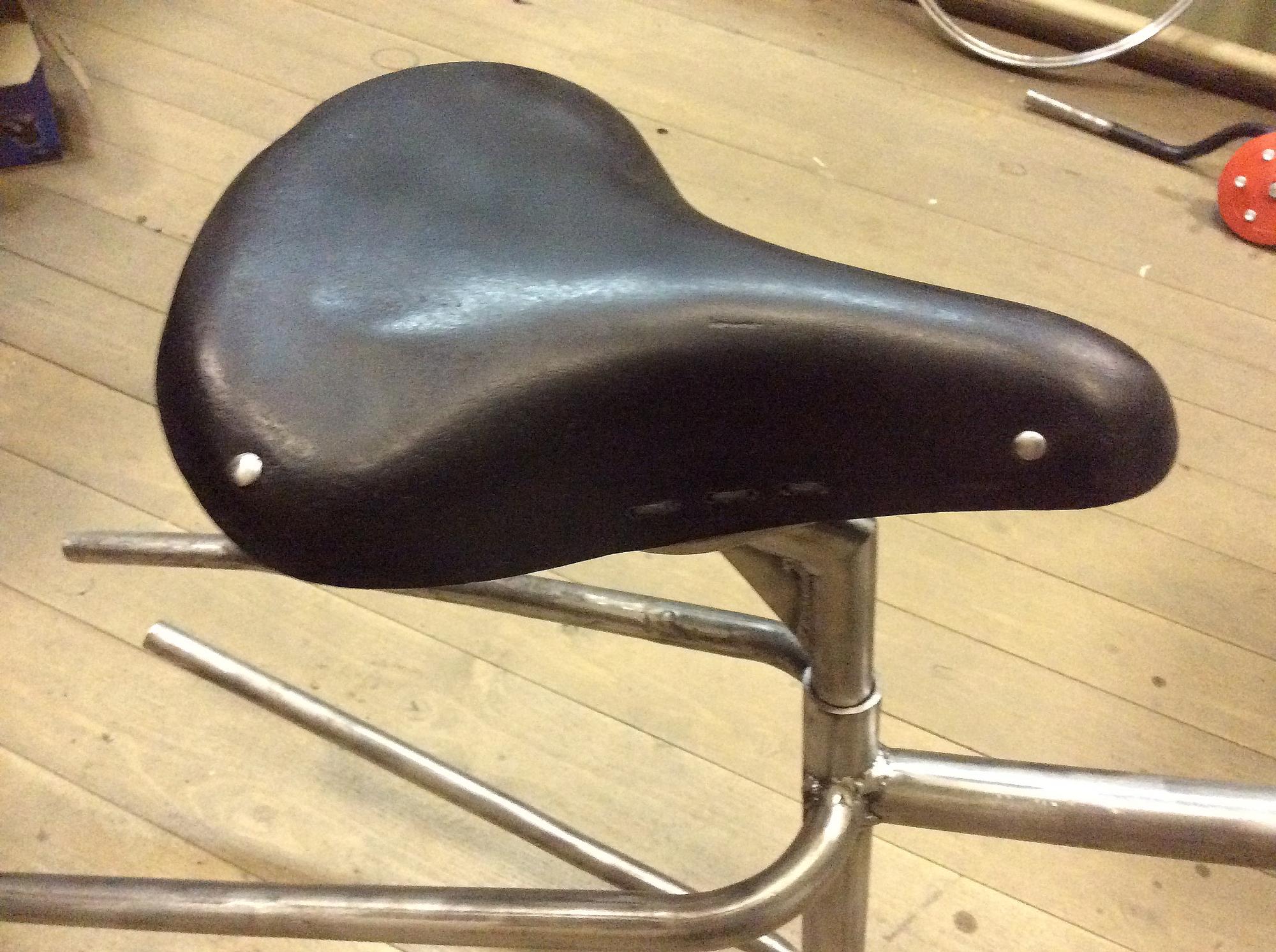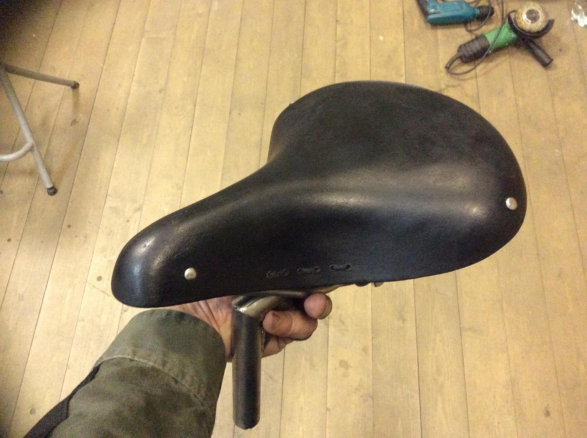 Зачистил шов, отшлифовал, покрасил и отполировал кожу сиденья, было: