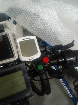 После нескольких нападений, стал брать в поездки ультразвуковой отпугиватель, но у него оказался один существенный недостаток, необходимо направлять непосредственно на собаку. В итоге отдал ребёнку, в школу ходить. Достал из закромов старый, добрый электрошокер, когда-то покупался как психологическое воздействие, но использовался редко, очень громкий и сильный запах озона, собаки до сих пор провожают меня сидя, или прячутся за хозяев, к сожалению ещё есть такие, кто гуляет своих питомцев без поводков. Опять же не очень удобно им пользоваться сидя в седле, достань, включи, нажми. В итоге сделал шокер под рамой. В Китае купил DC, вмонтировал в пластиковую трубку, вывел контакты, напаял жало, залил герметиком, выделил его визуально и установил. Питание, вывел отдельно на раме, от 2-х 18650 последовательно. Кнопки на руле, красная - включили питание, зелёная - подали его на устройство. Очень эффективно, не отвлекает и всегда под рукой. Предвижу вопросы по поводу целостности яичек, не волнуйтесь, дуга на раму не пробивает, с яичками всё в порядке.  :laugh:
