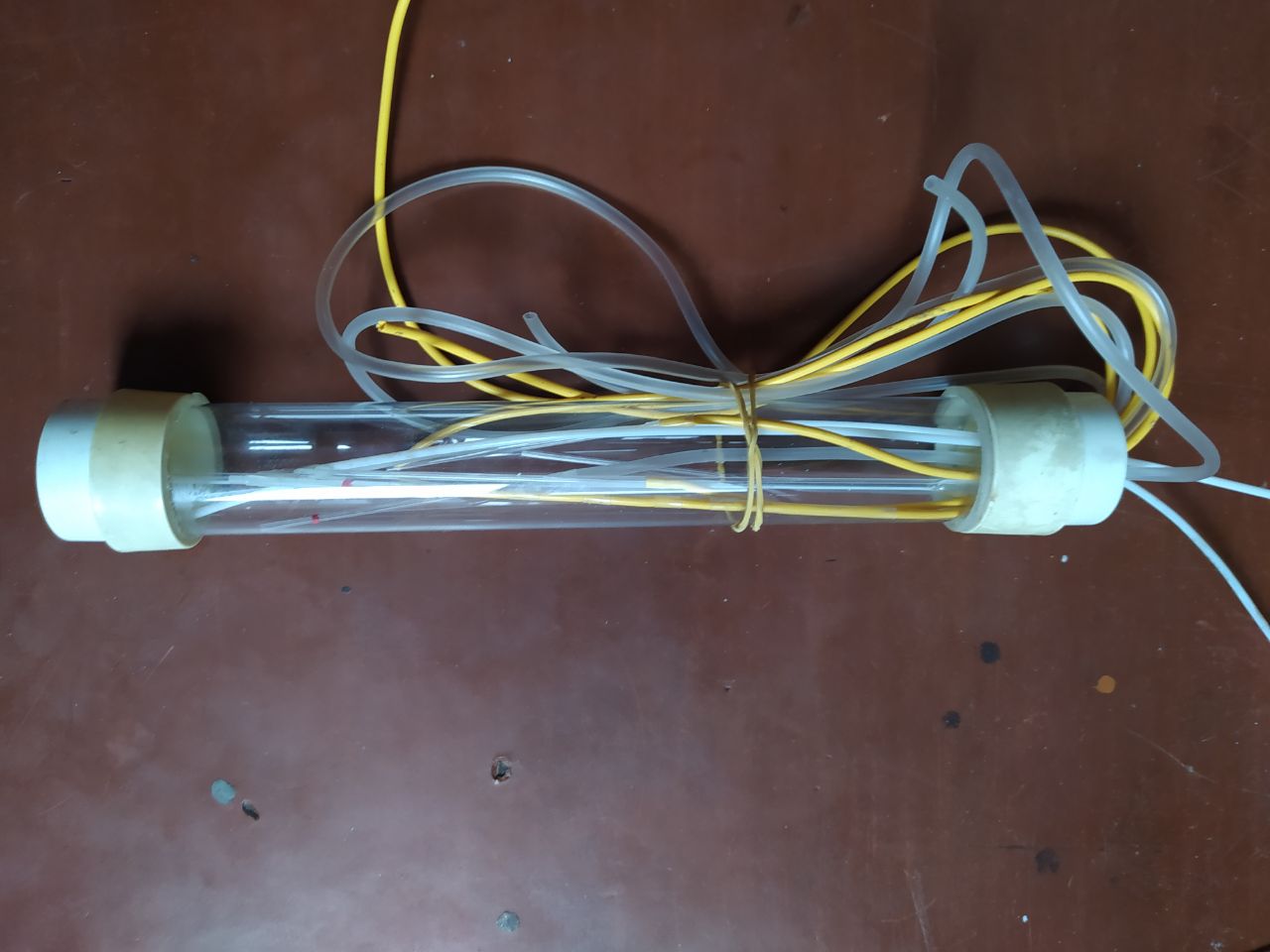 Длина стеклянной трубки 250 мм, наконечник заточен на конус алмазным надфилем. Когда беру пробу  хорошо видно как электролит поднимается вверх, однако надо подобрать угол обзора.