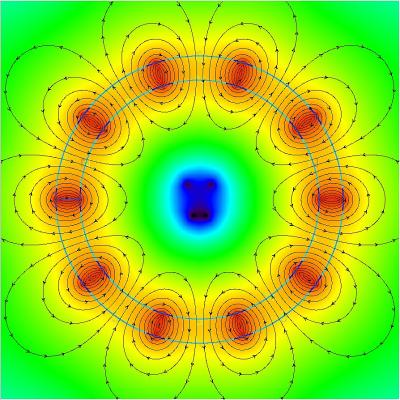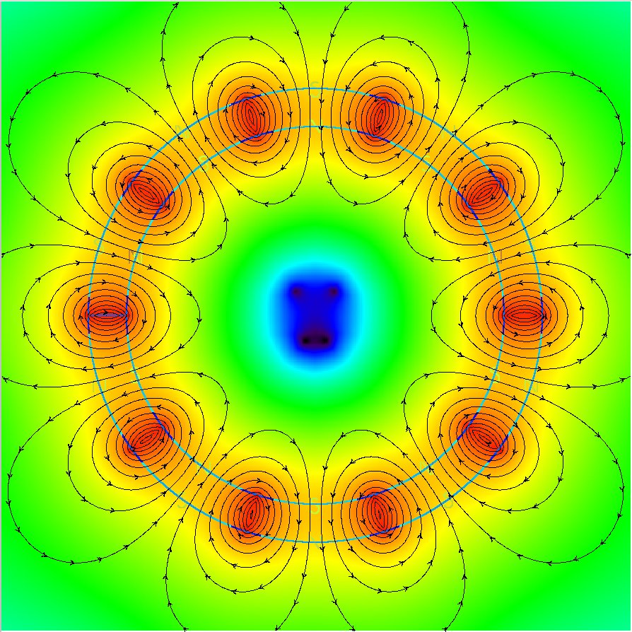 Сегодня покопался в тырнетах и нашёл простенькую програмку Visimag, заброшенную лет десять назад :) но рабочую. Она позволяет визуализировать в 2D простые магнитные системы, в общем, освоил её минут за 5 :) и вот что получилось.