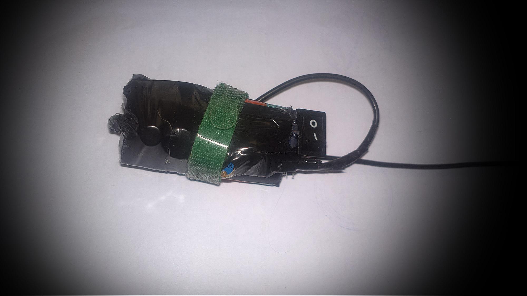 Сделан из 2-х цилиндриков, дисишки на 5В и выключателя.