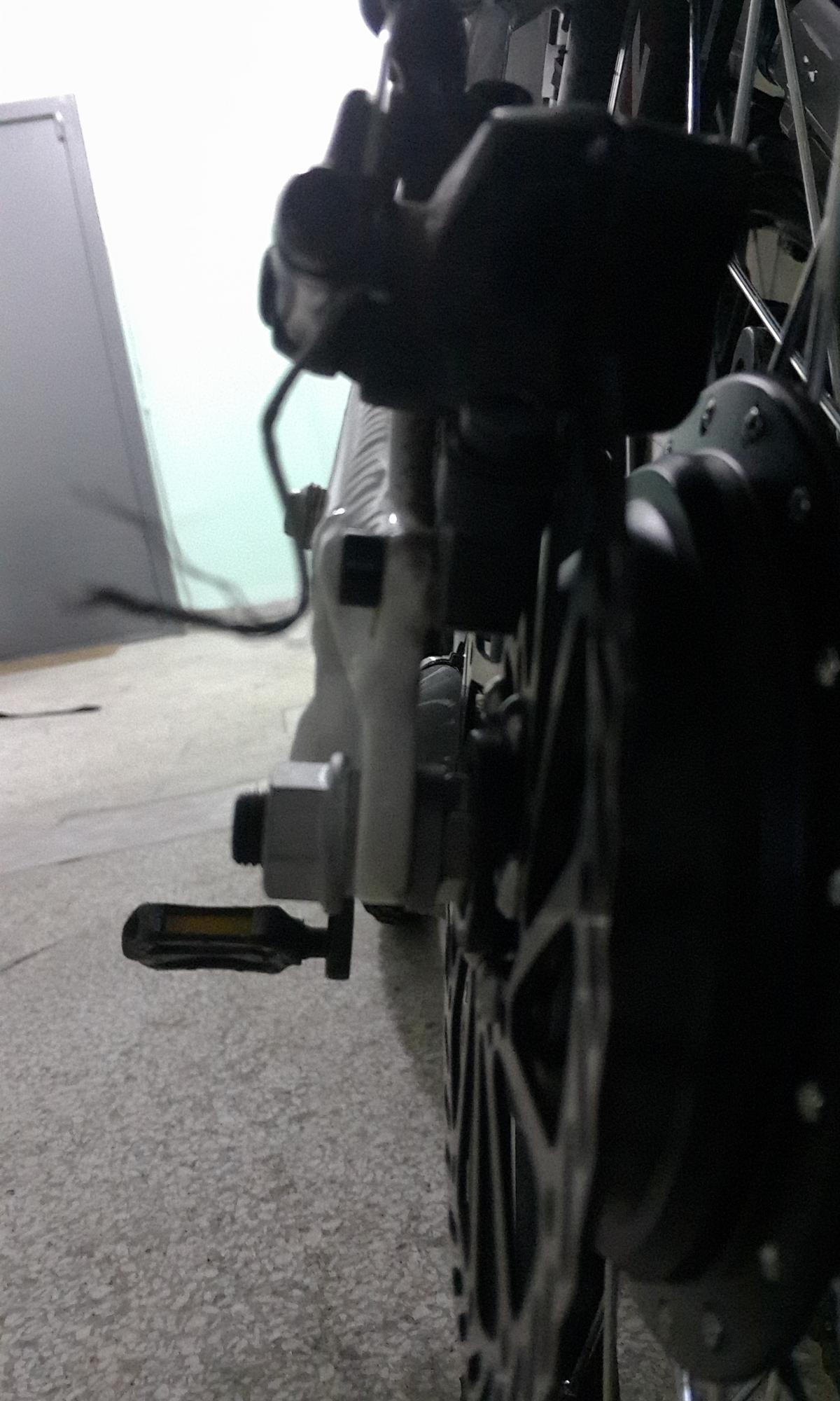 Первый вкручивается вместо штатного кронштейна петуха, второй в места крепления тормозного механизма (толщина 6.5 мм нержавейка)