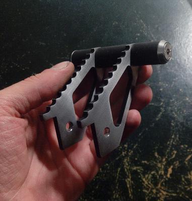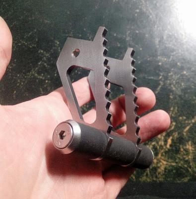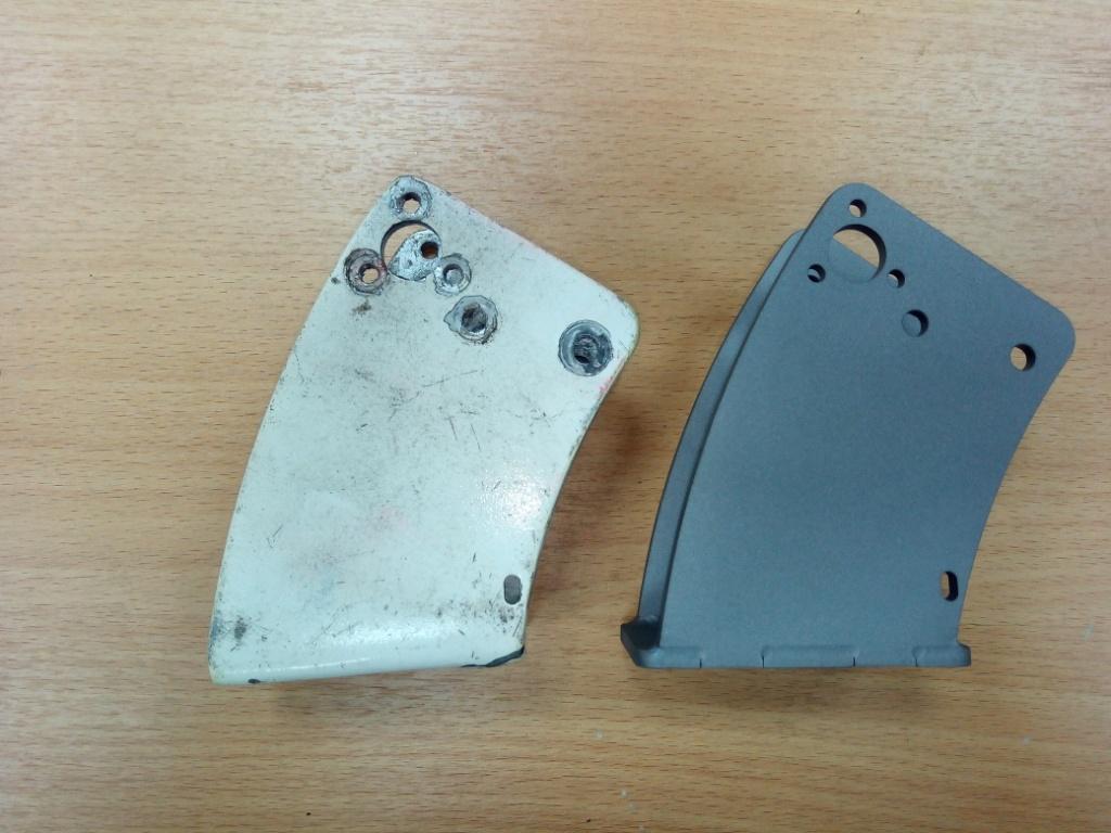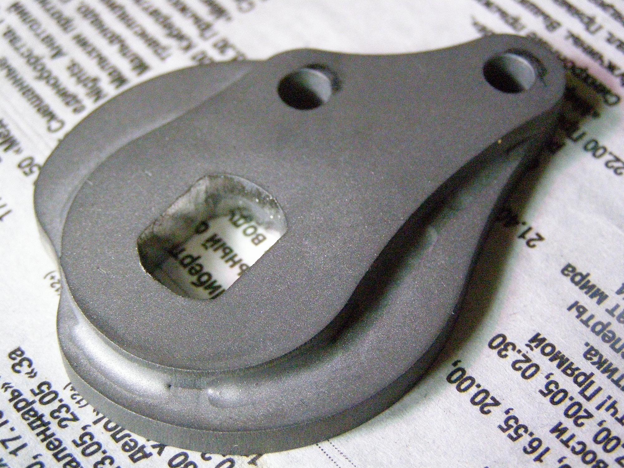 Списался, отправил фото, мне пришёл на емаил примерный шаблон, распечатал, вырезал, приставил, скорректировал, сфотал, отправил назад. И так несколько раз. Потом прислали шаблон из тонкого металла по почте. Приставил, скорректировал, сфотал.. И вот финальная резка, а вскоре получил готовое изделие из титана, увы, малость пришлось напильником круглым пошкрябать, считайте на коленке делали... Ну, а коли кто владеет волшебным мастерством работы в программе "Компас", у того ни каких напильников не будет. Факт!