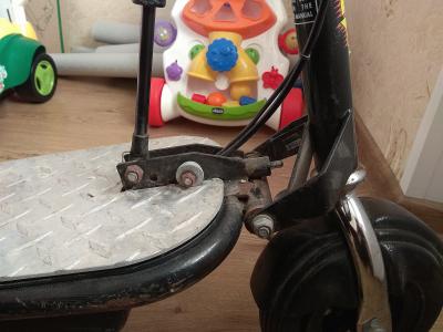 Элемент механизма складывания. Очень простой и надёжный. Просто тянешь руль и он складывается, можно носить за ручку. Ни люфтов, ни лишних движений. Сейчас так не делают уже.