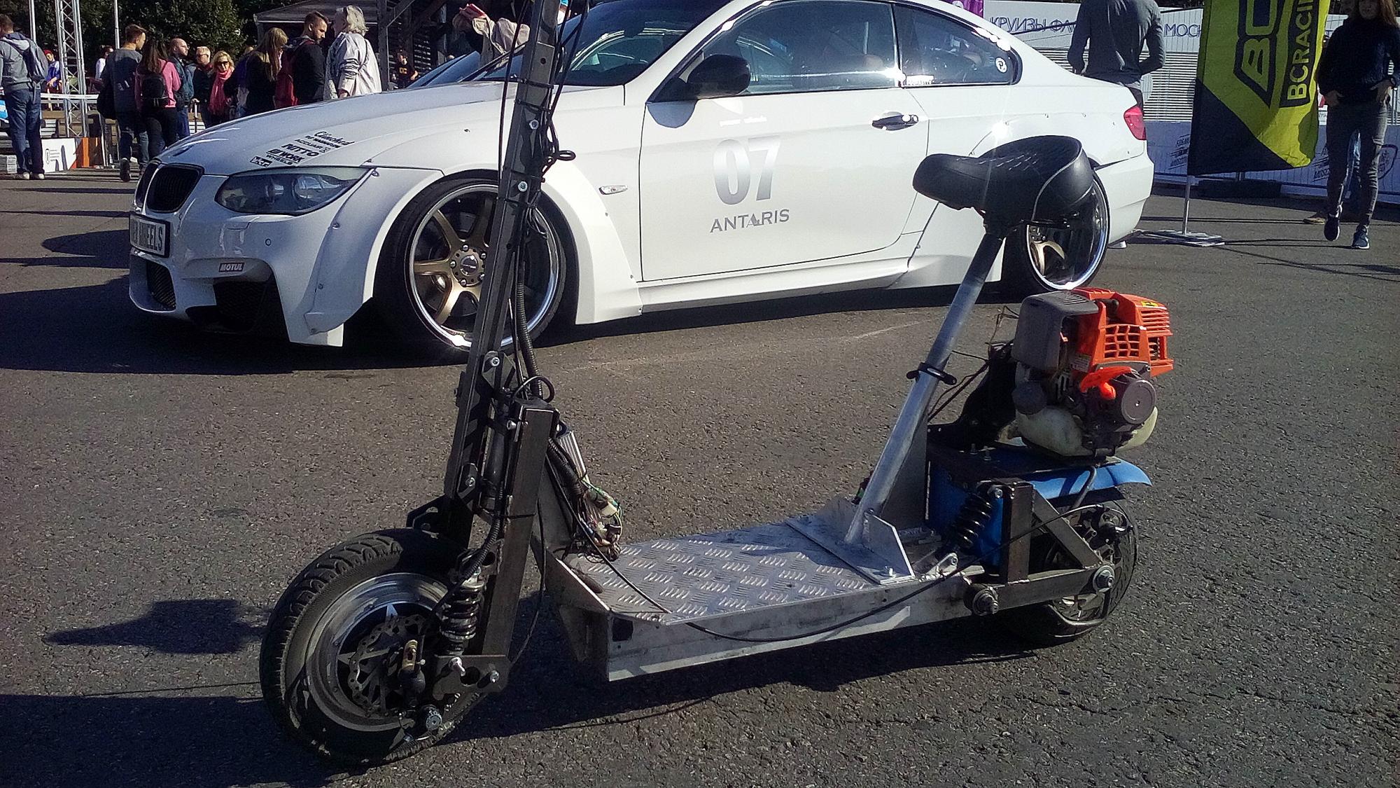 Два моих самоката. Оба сделаны из explore. Что поменьше уже тут выкладывал, счас немного доработал, прибрал провода и заменил переднее колесо. На "большом" откатал сезон пришло время похвастать ))
