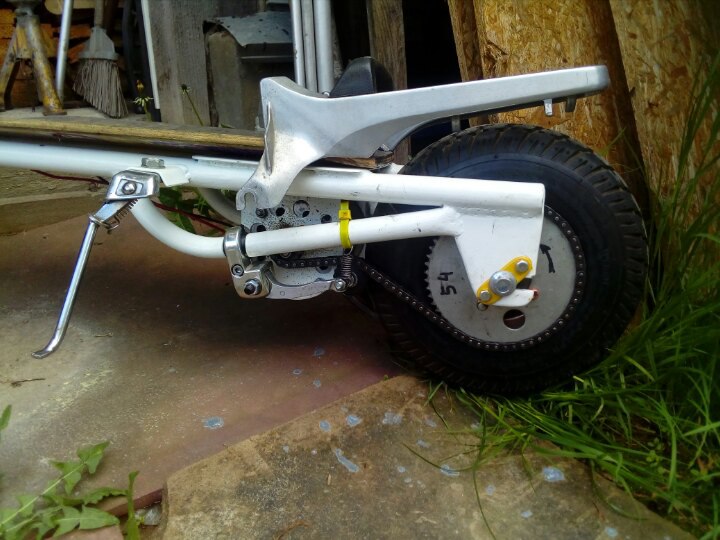 Всё ,что на фото дособрано и поехало. 36 V 16AH 800Wt,цепь,обгонка. Вес не мерял.