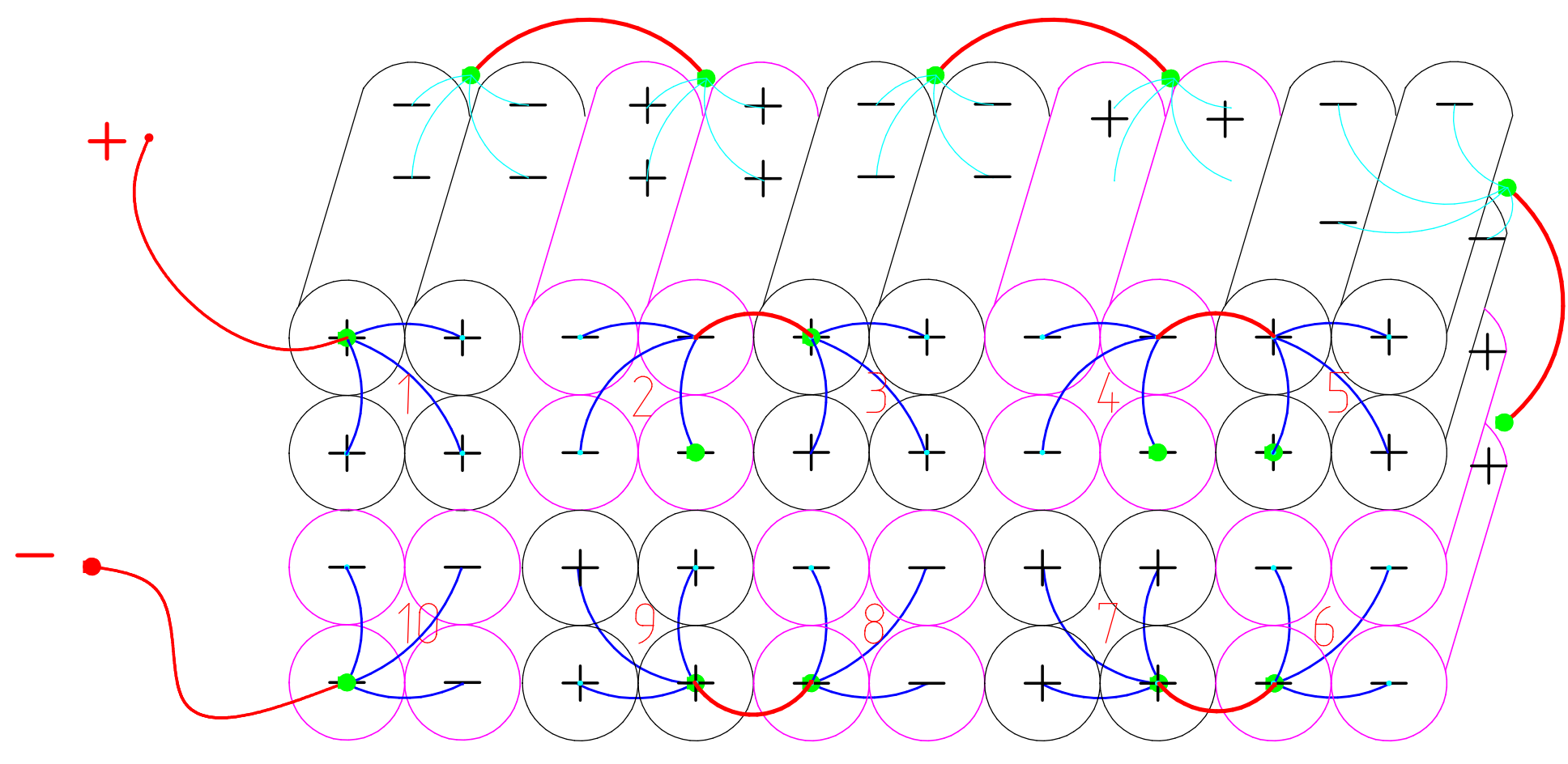 Насколько я смог прочитать схему - провода от бмс припаиваются к + каждой последовательности - оттого и отрезанные провода - как лишние. Даже если припаивать их ко всем плюсам - проводов тупо не хватит. Логику я тут не уловил.