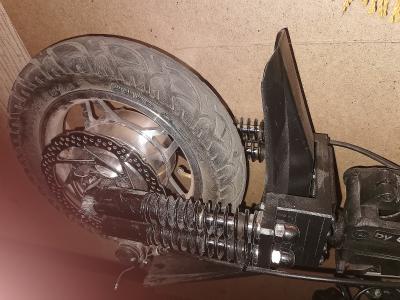 Отлично. Я так задумал, потому что колесики 350Вт не выдадут такой крутящий момент, чтобы можно было поднять самокат. Но если по задумке встать на этот упор, то мощности-то особой и не потребуется, крутящего момента окажется достаточно, чтобы вставать на заднее с газа. Другой вопрос, не отломит ли эта штука раму. Я ее в этом месте как бы "разрезал" пополам, чтобы усилить. Но вот рычаг маятника хоть и сделан с запасом по ходу амортизатора, все равно может стукануть об раму