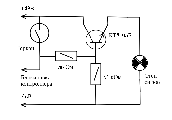 Цитата: Mike 372 от 13 Май 2021 в 17:41Геркон остался, управляет транзистором, залипать перестал. Транзистор включает стоп-сигнал. Включен по схеме эмиттерного повторителя.