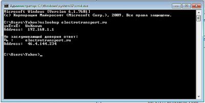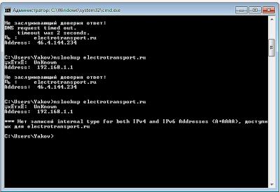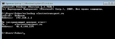 nslookup electrotransport.ru