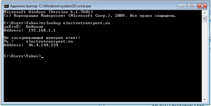 Долго ждать не пришлось. Щелкаю nslookup и получаю в ответ новое окошко