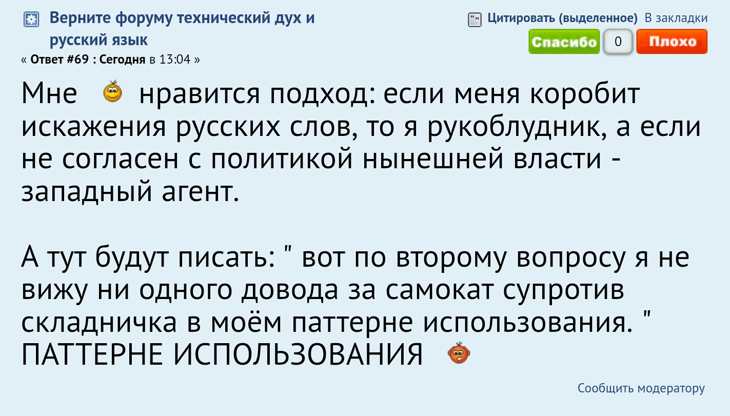 Функция "сообщить модератору" работает очень медленно. После отправки сообщения почти минута лага.