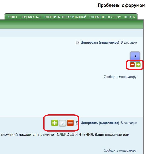 В первых сообщениях тем перепутаны местами кнопки "+" и "-" (относительно всех остальных сообщений).