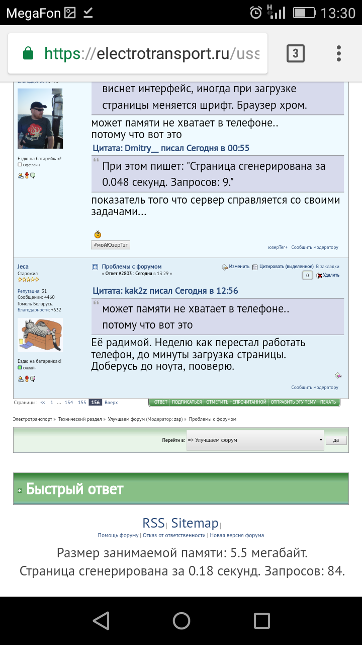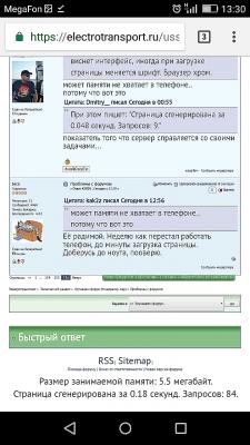 Я пока вышел из положения, установив в телефон мини-Оперу. Правда, для этого пришлось удалить Ютуб, поскольку места для установки не хватало. Теперь снова могу заходить на форум через телефон, все страницы открываются нормально. Из замеченных минусов - отсутствуют кнопки спасибок.