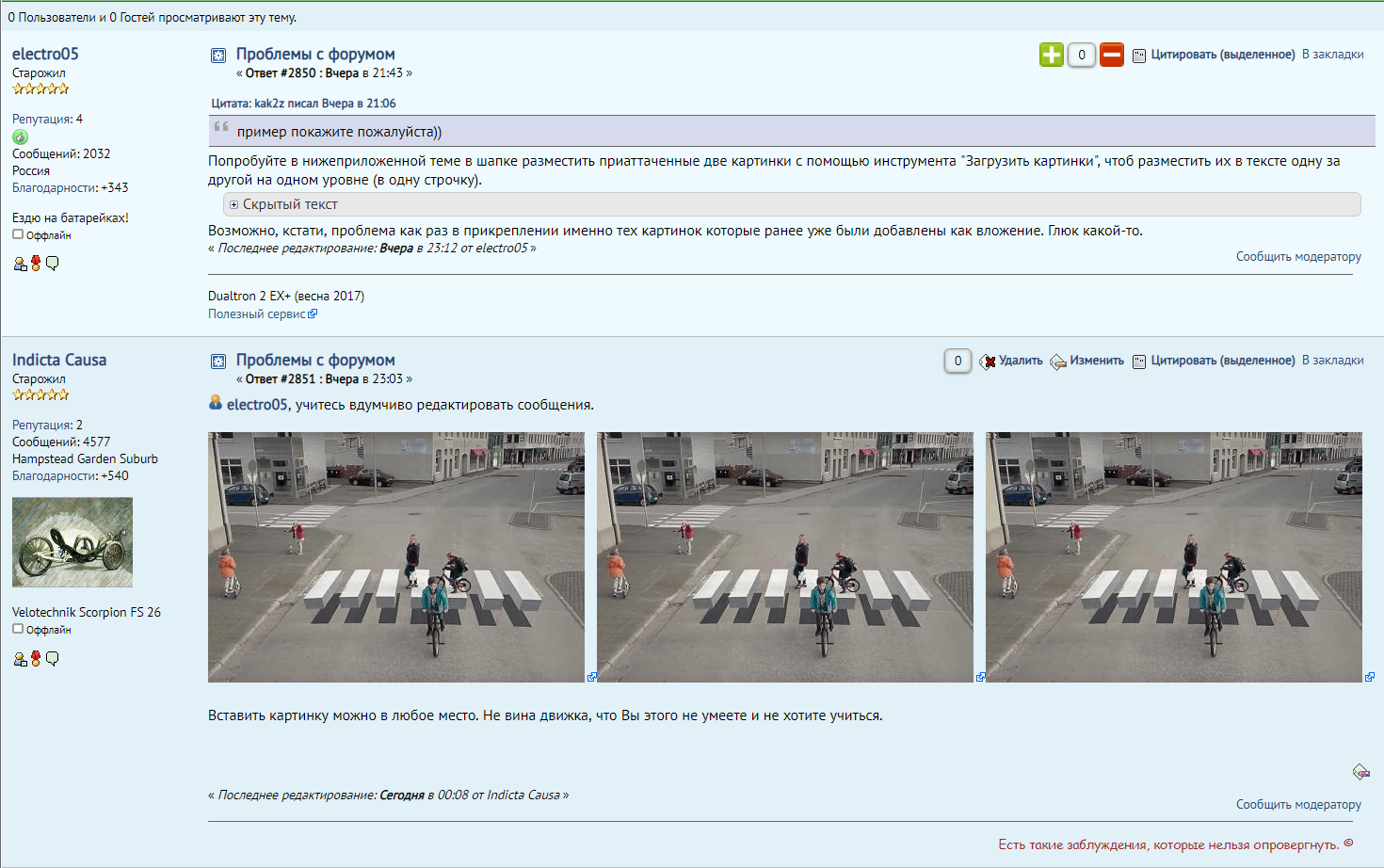 [user]Indiсtа Саusа[/user],  :facepalm: Что у вас получилось? И что вы пытаетесь мне доказать? Без вас знаю, что форматирование при стандартной загрузке картинок тут прекрасно работает. Вы добавьте картинку через вложение (кнопка "Выберите файл" чуть ниже чем "Загрузить картинки") и расположите эти изображения слева на право, тогда поговорим. А суть проблемы вообще не в том (выше описал). В общем не продолжайте пожалуйста.