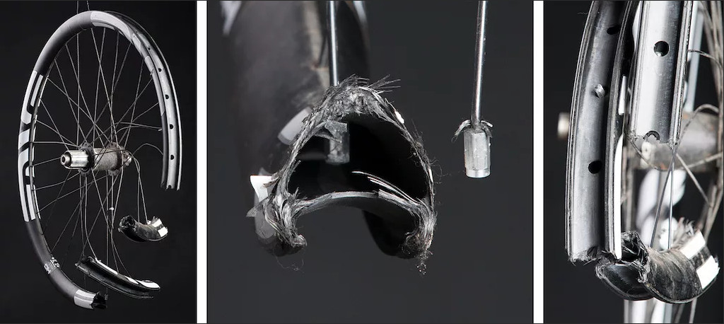 карбоновый обод в не сколько раз лучше алюминия, он может только лопнуть но для этого нужны  нереальные перегрузки как по крутящему моменту, так и по весу свыше 200кг, в остальном  забываешь что такое яйцо  восьмёрки, он легче  и и твёрже пластелинового алюминия