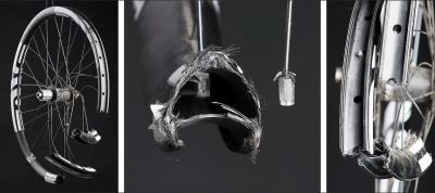 я видел тока на алюминии  от установки бескамерки нипеля и он трескался там и также у отверстий для спиц, ну всякое может и карбон может  навлечь беду... Но как говорят да и написано натяжение спиц карбон выдерживает больше чем  люминь, у моего заявлено 180кг натяжение спиц  %-)