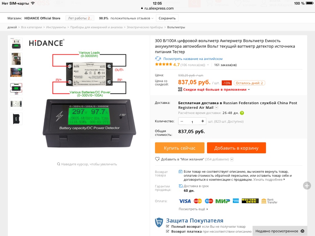 https://ru.aliexpress.com/item/300V-100A-digital-DC-voltmeter-ammeter-voltage-meter-car-battery-capacity-volt-current-wattmeter-detector-power/32827774967.html?spm=a2g0s.13010208.99999999.412.AFvDjY