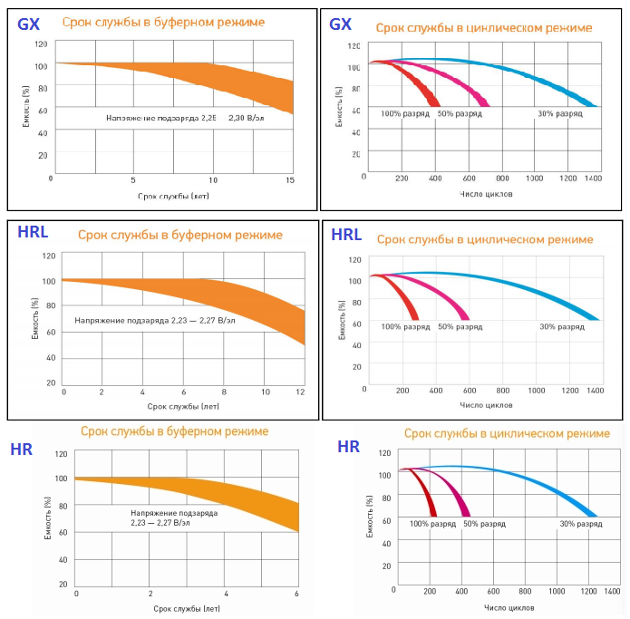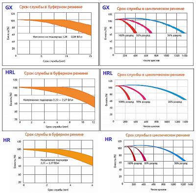 Что интересно, на графиках из старых даташитов HR и HRL указан пониженный диапазон плавающей подзарядки, а для GX обычный.