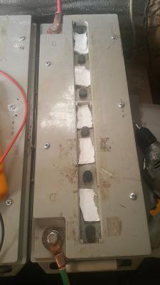 Зависит от контакта шурупов с перемычками между банками и смотря в какие перемычки попадете при сверлении,  в положительные или отрицательные.  Лучше попадать в отрицательные, там чистый свинец..  меньше окисления и падения напряжения.