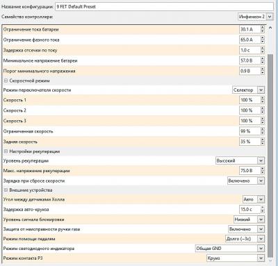 Спасибо за ответы.  Мне нравятся мои настройки по умолчанию, надо поменять только LVC, то что приложено в программе - оно отличается, у меня нет активации круиза при сбросе газа, токи не уверен что выставлены там такие же.. 35А выдавало, а там стоит 30А и т. д.