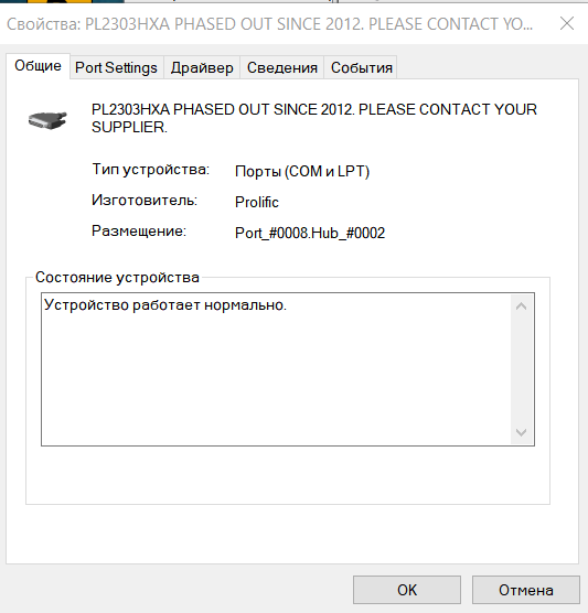 Скиньте пожалуйста драйвера. Ставил старые драйвера Profilic_Win8_x64_x86 (Запуск этого устройства невозможен. (Код 10)