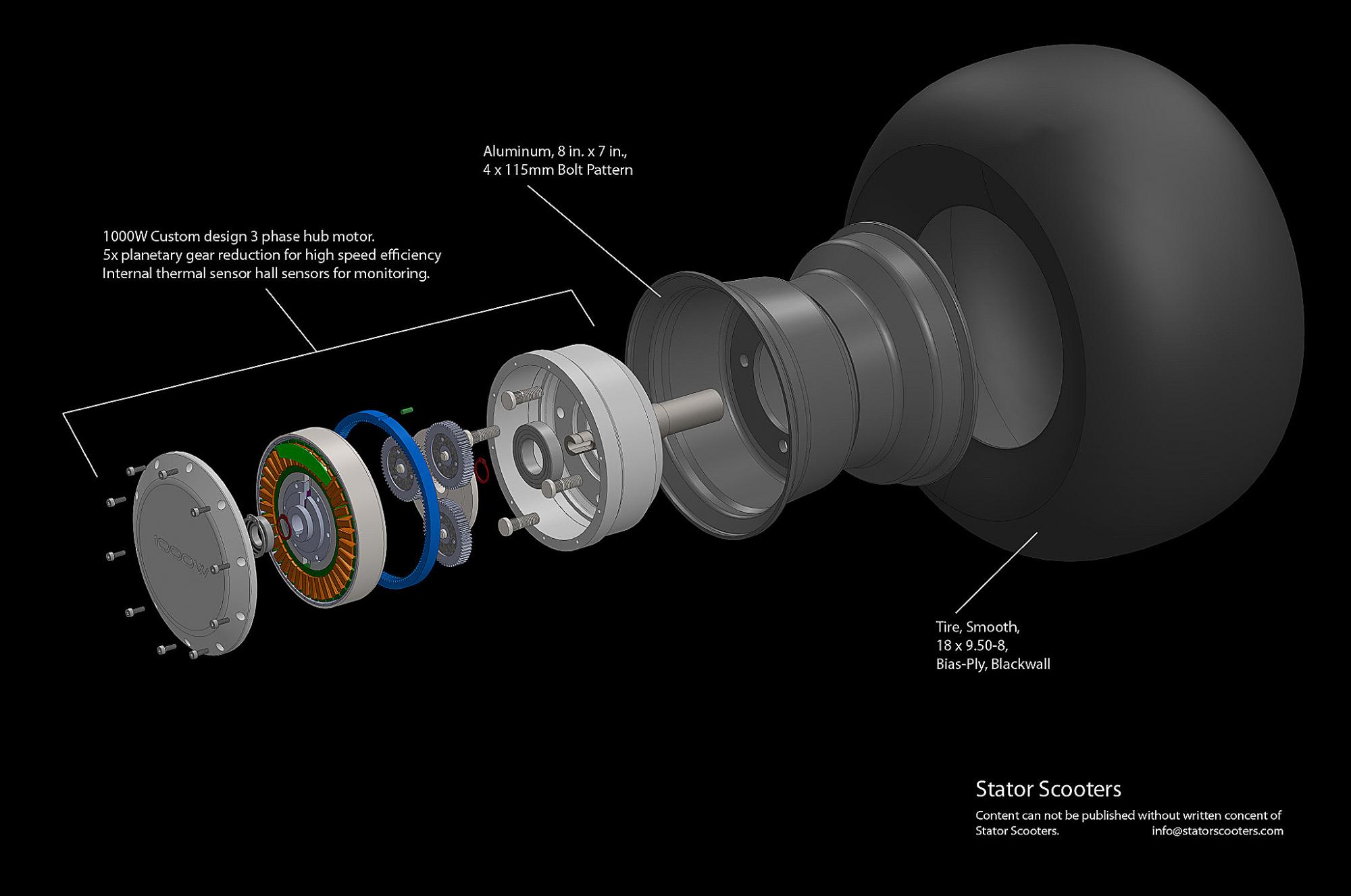 Смотрите какая прикольная штука, задний привод, нет задней подвески, дека как у куго или е-твов и похоже из за того, что нет пружины и место добавилось, контроллер тоже в деку засунули  :-D наверное он для тех, кто не любит скрипы и любит подрифтовать ;-D