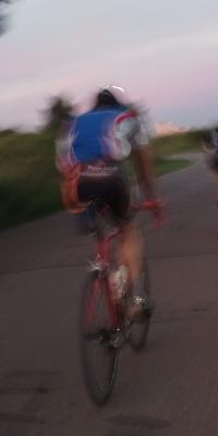 Водитель в последнюю сек. увидел циклиста и тормознул.