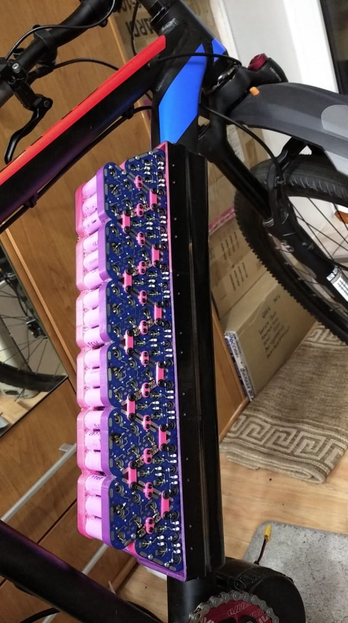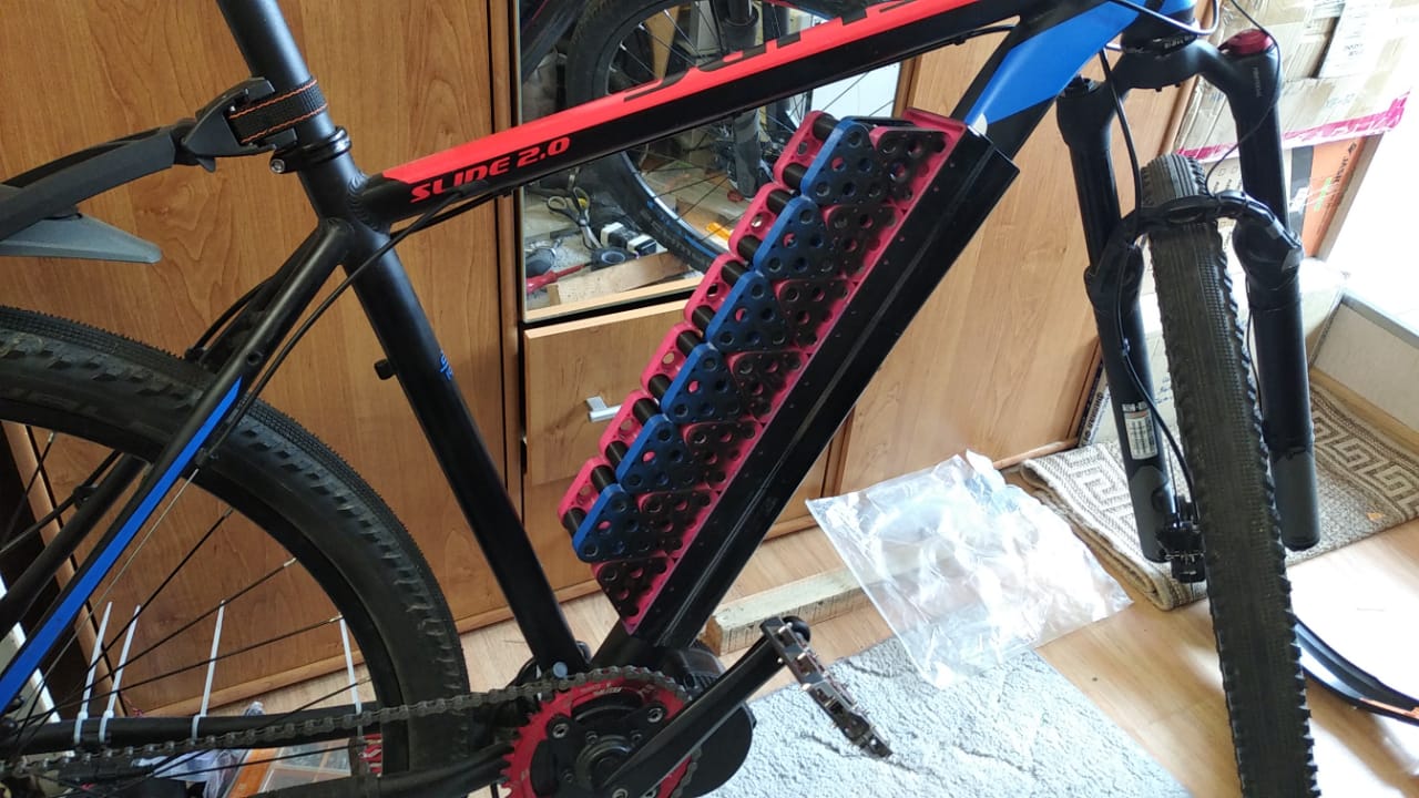 По собсно батарее - ячейки Панасоники с клапанами, соединение сваркой. Емкость батареи точно не назову, но так понимаю а/ч 12 там точно есть. Соединена в параллель с первой, заряжаются от одного зарядника (у меня их два, на 3 и 4 ампера, но заряжать буду одним в целях продления срока службы АКБ). Пробег должен увеличиться км. до 80-90.