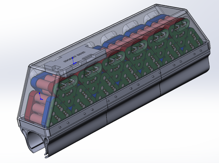 Теперь нужно определиться с дополнительной электроникой в корпусе, разъемами и доработать модель верхних крышек для печати. Батарея сидит очень плотно, расшатать из стороны в сторону не получается. Единственное за что опасаюсь - сам пластик, что с ним будет на солнце.